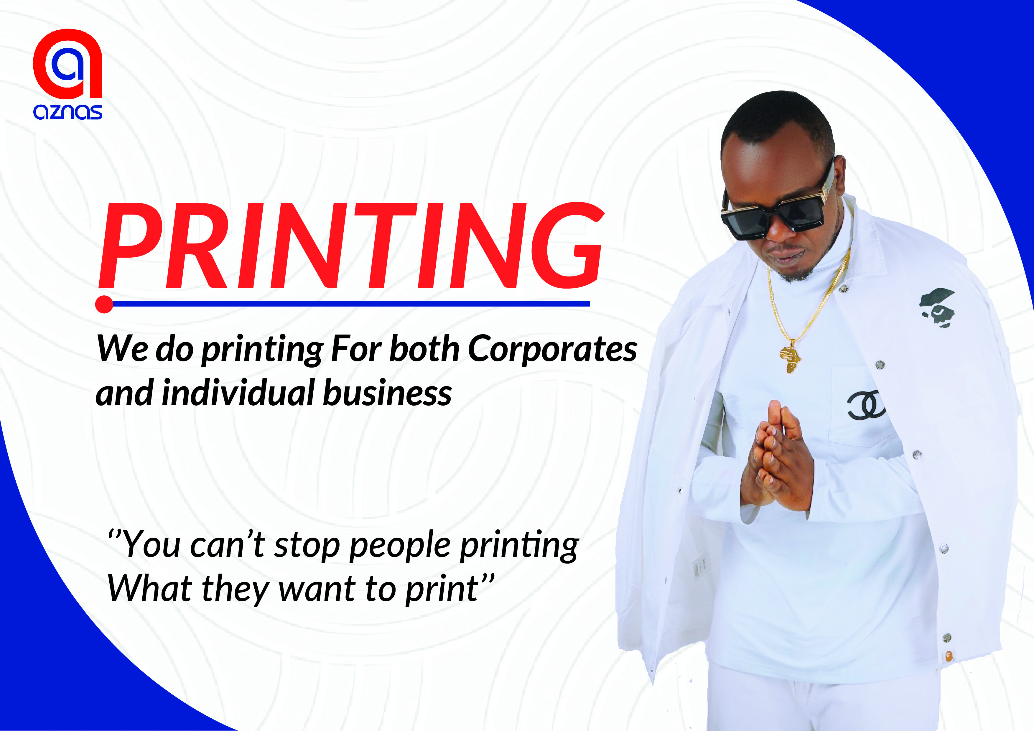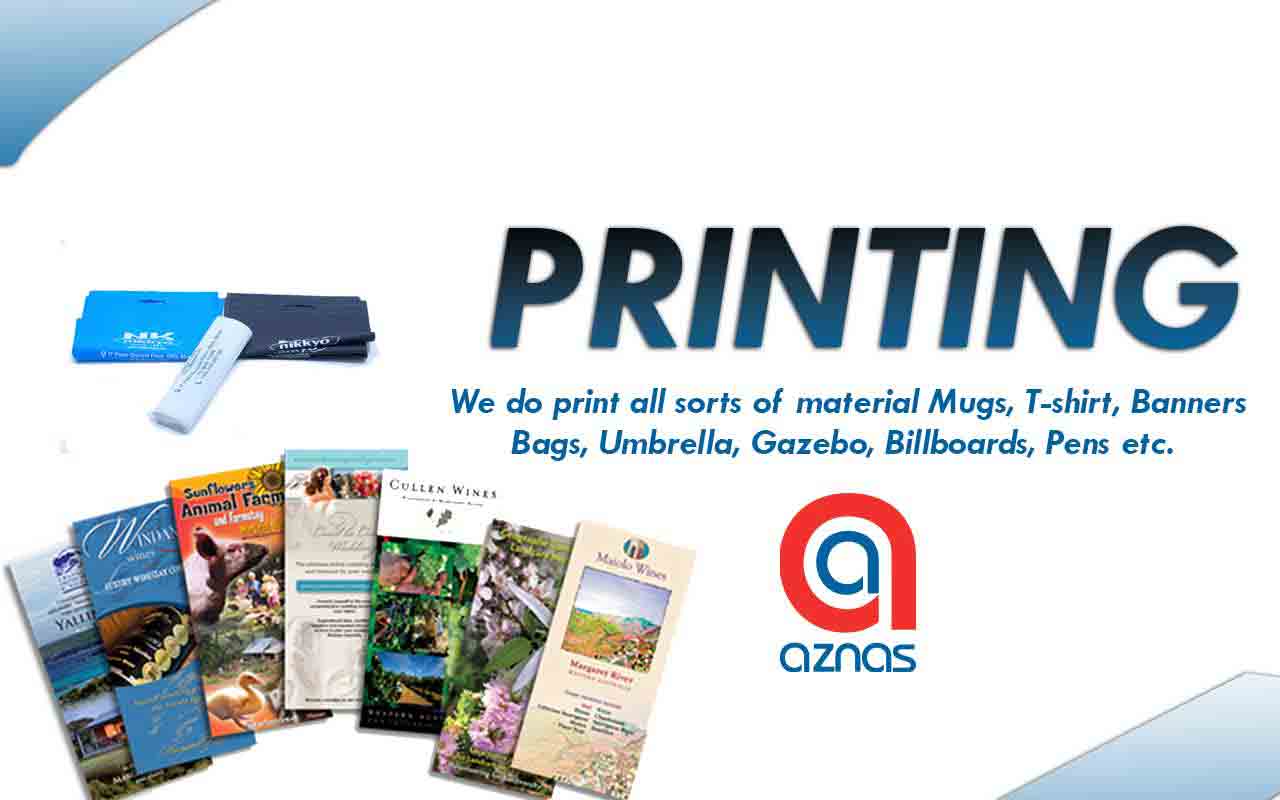 Aznas is a company with good expertise and experience in Printing, Embroidery, Promotion, Branding and Design industry. Our company focus on the clients needs and offers each client a dedicated and esteemed services .Through our angled approach we can create the brand identity you require and build your brand awareness through the countless services and products we offer. We offer you services helping you to establish your market presence. We understand the importance of making a good impression of your company or brand. Therefore, our creativity will add value in transforming your company's corporate image into a power punch. Our strength is boasted on an extensive network and knowledge of the marketing and communication industry. The added availability of different expertise from a pool of associated companies that enable us to deliver quality services and products.